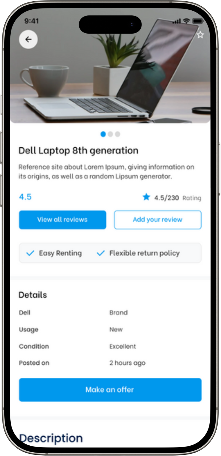 Once you rent a product, you’ll use it for the agreed-upon period and return it to the owner in its original condition. The app tracks rental periods and ensures smooth coordination for returns.